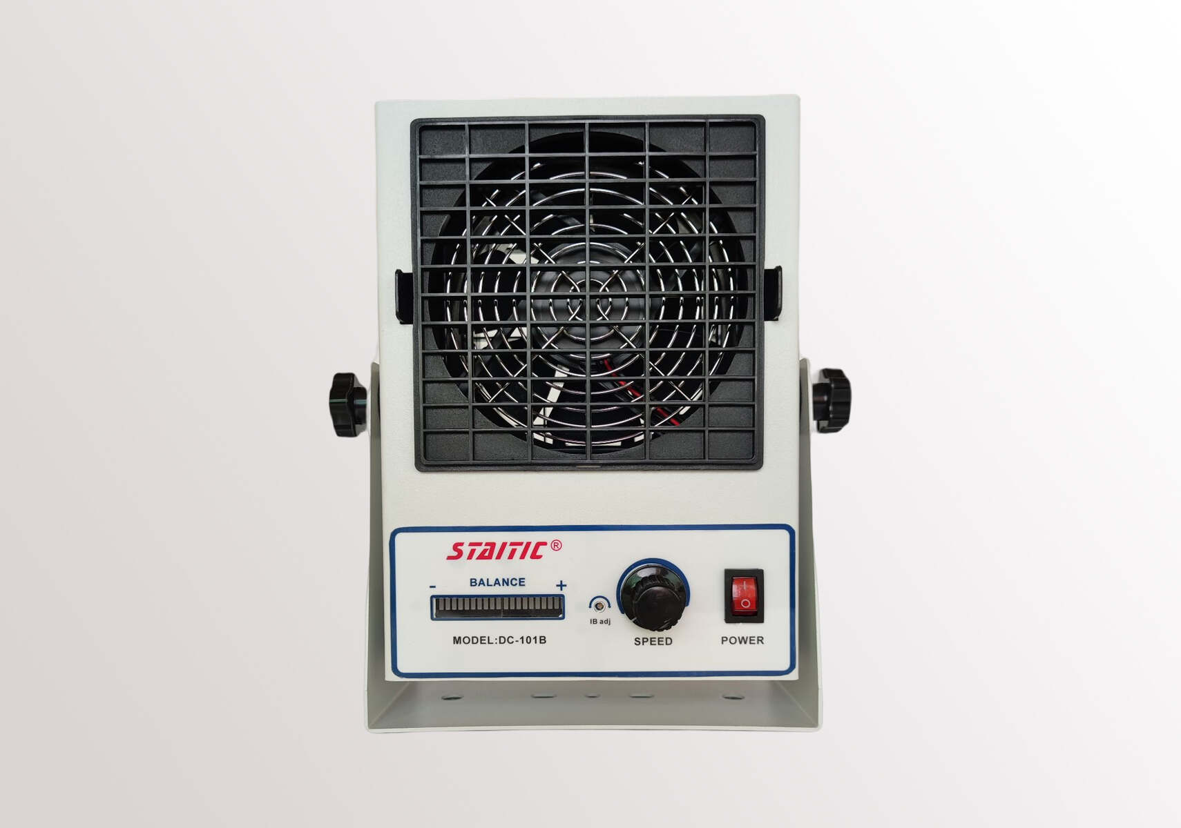 DC-101B 是一款緊湊型的雙穩(wěn)態(tài)自平衡桌上型寬范圍直流離子風(fēng)機,通常放置于桌面上中和操作區(qū)域的靜電。也可以安裝于支架上使用。最佳使用范圍在風(fēng)機正前方 12”—48”之間范圍,消電時間會隨著距離而變大。